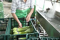 青果を詰めたままの洗浄、雨天時の屋外作業が可能な水はけの良さです。