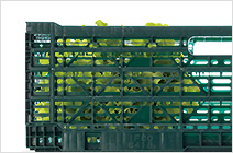 イフコ・コンテナーの大きな特長となっているのが、高い荷重性と軽量性を両立した独自のメッシュ構造です。青果を詰めたまま洗浄が行える